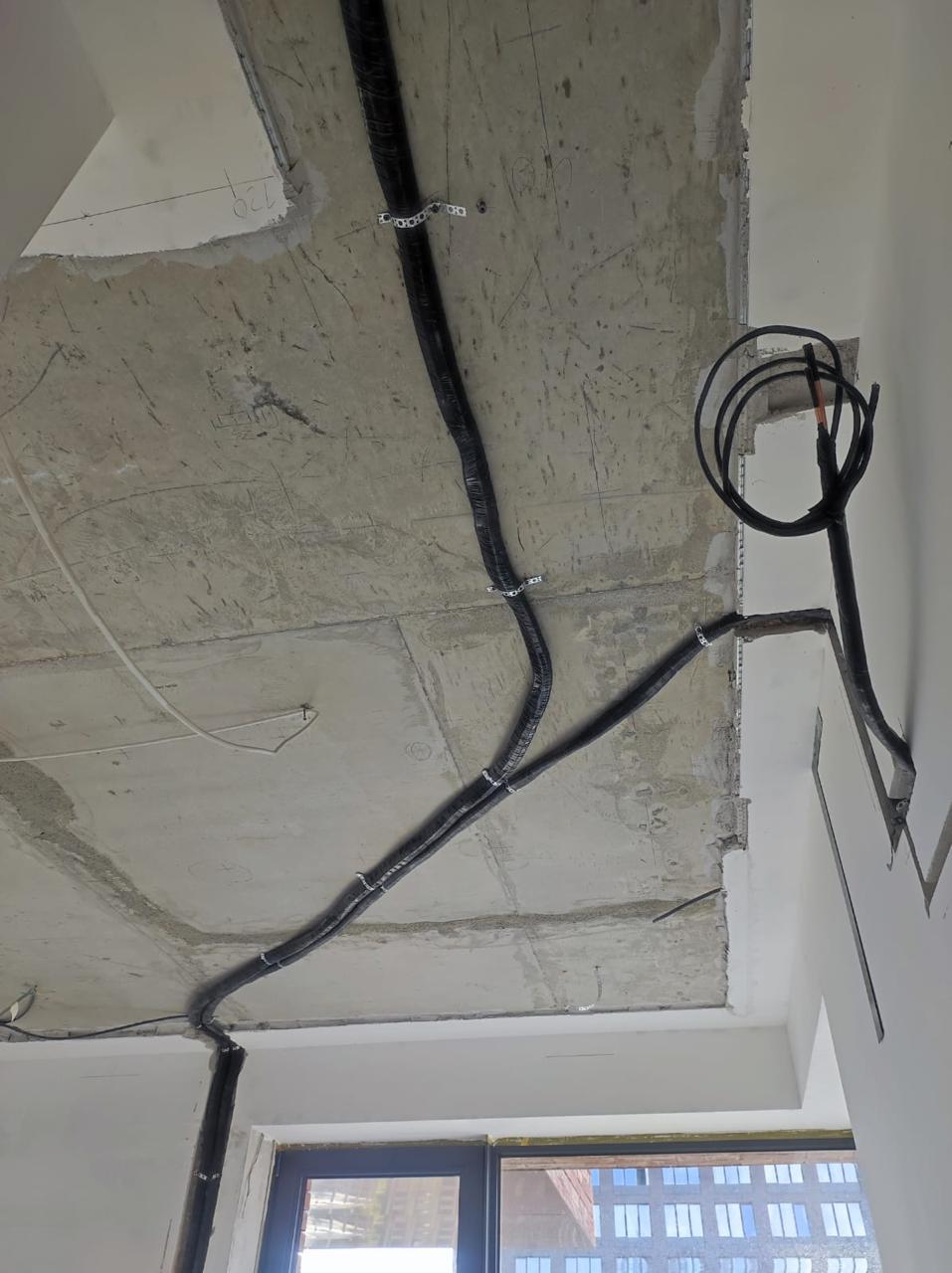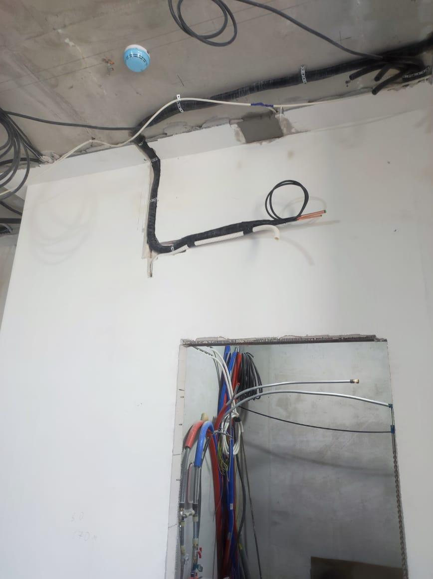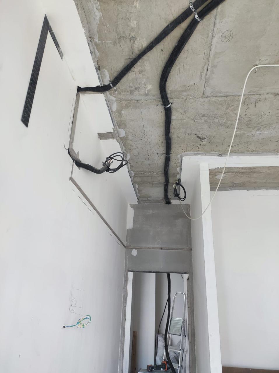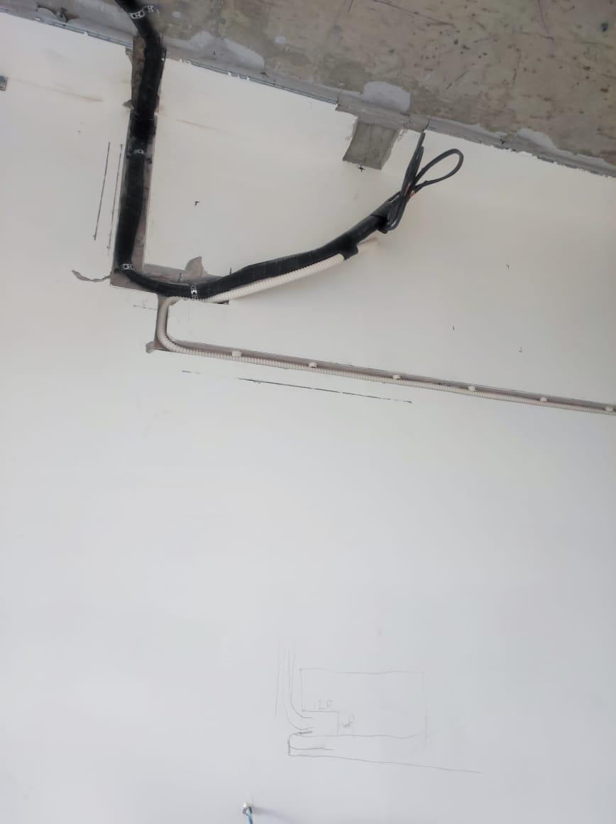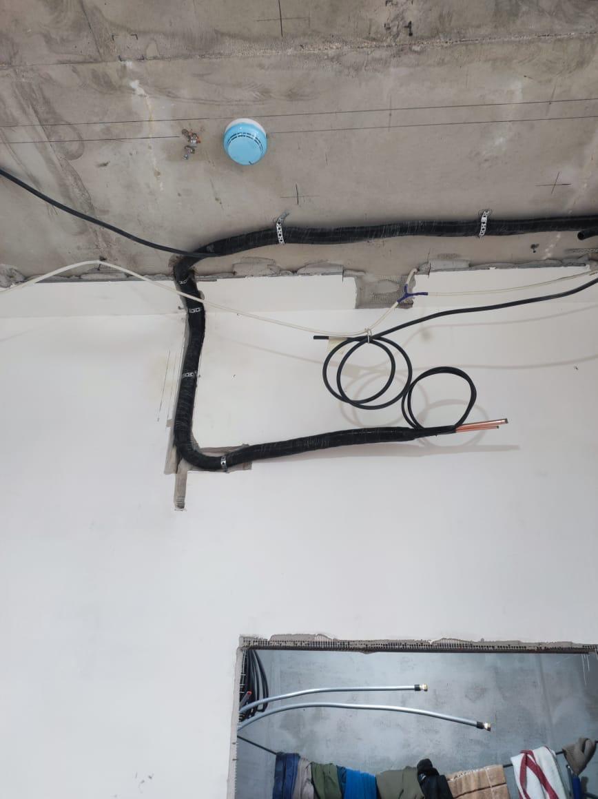 ✔ Проведение электропроводки: устанавливаем кабель и розетки для кондиционера;